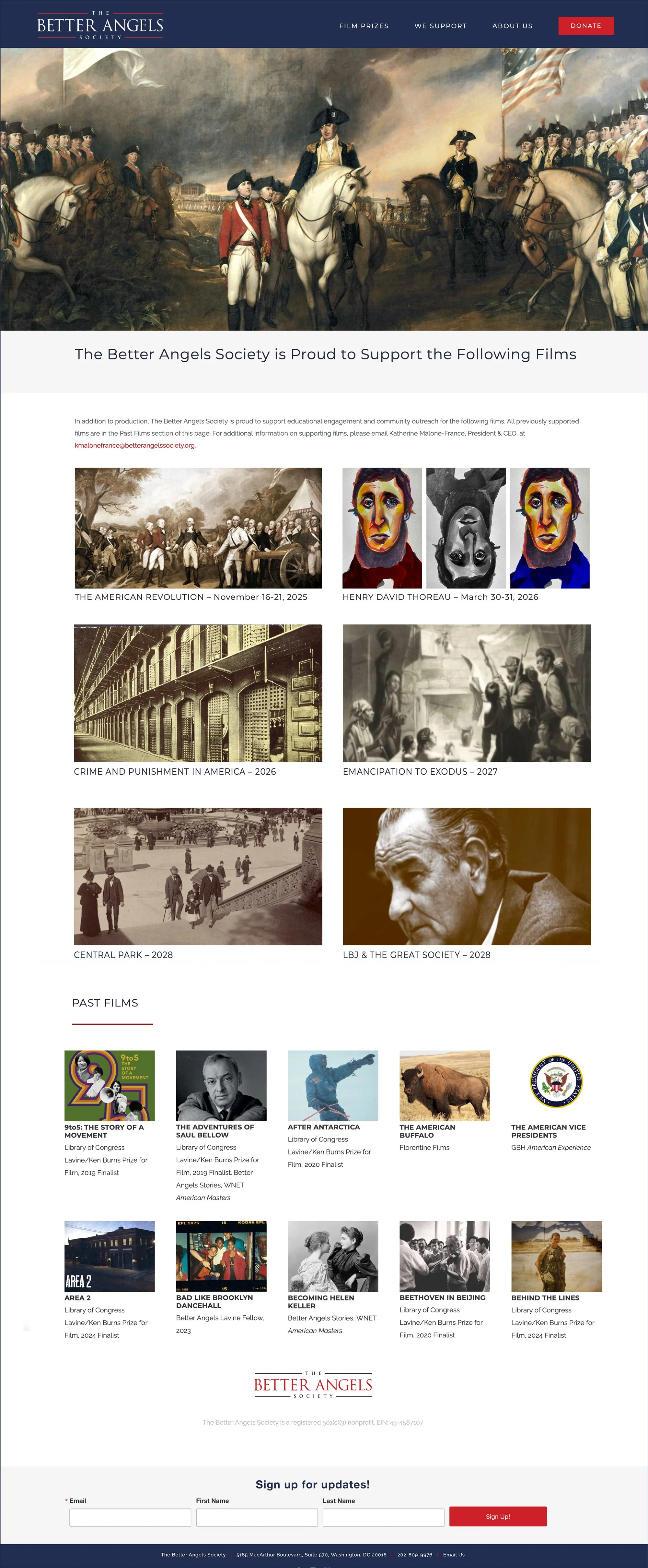 Kissane Viola Design has been proud to support the Better Angels Society this past year through promotional design work that celebrates their inspiring mission to champion the documentary films of Ken Burns while uplifting new and emerging filmmakers who bring America’s stories to life. The Better Angels Society is a nonprofit organization devoted to supporting Ken Burns’s legacy and cultivating a next generation of documentary storytellers who share a commitment to illuminating the American experience in all its complexity and richness.